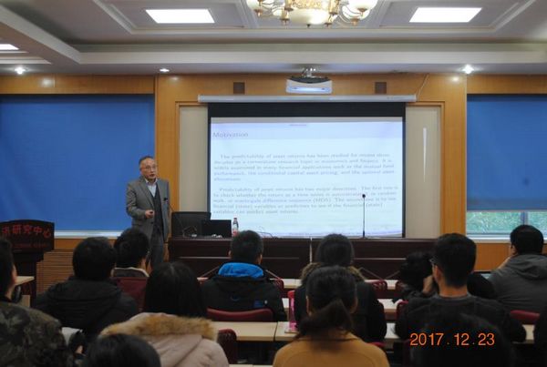 2017年12月23日上午9:00,美国堪萨斯大学经济系蔡宗武教授在山东大学邵逸夫科学馆第五会议室为我院师生做了题为“Models on Testing Predictability of Asset Returns”的主题报告。报告主要介绍了测量资产回报率预测水平的相关内容,涉及了蔡教授最近主要的研究成果,并对这一领域未来的发展前景进行了探讨。